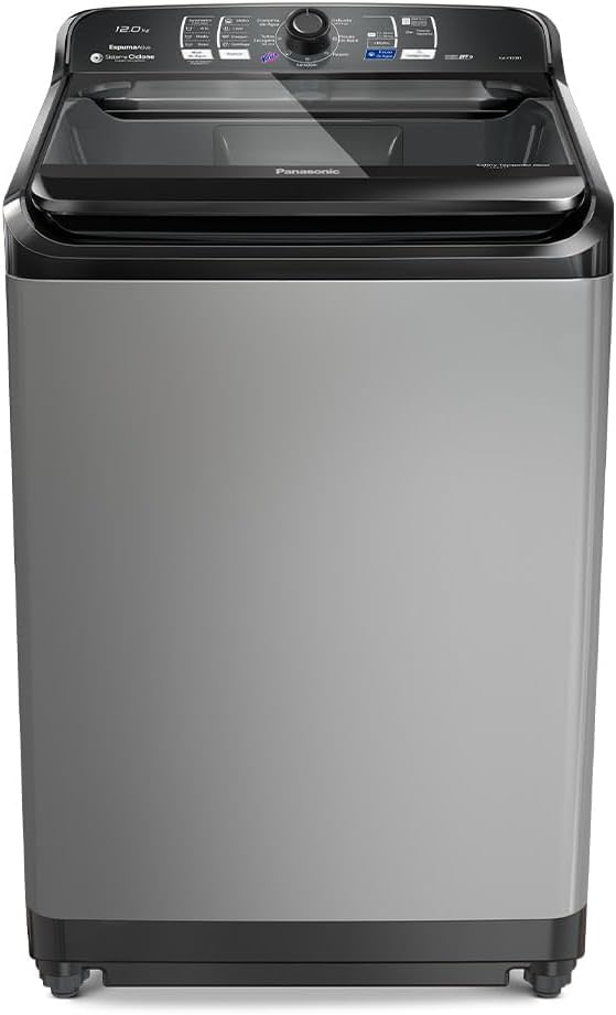 A Panasonic Titânio NA-F120B1T combina eficiência, economia e praticidade. Com o Sistema Ciclone, ela remove manchas difíceis sem agitador, enquanto a função Vanish aumenta em até 20% a limpeza das roupas.