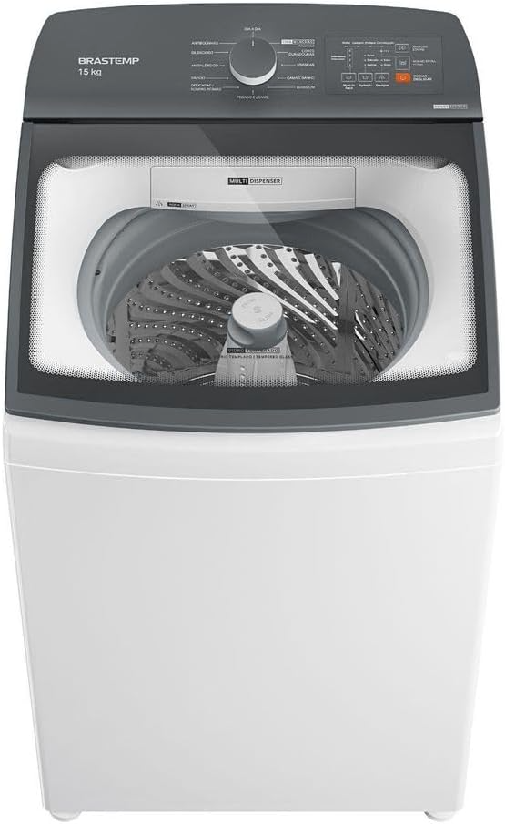 A Brastemp BWF15AB é ideal para famílias grandes, oferecendo 15 kg de capacidade, tecnologia Smart Sensor e Ciclo Tira-Manchas avançado.